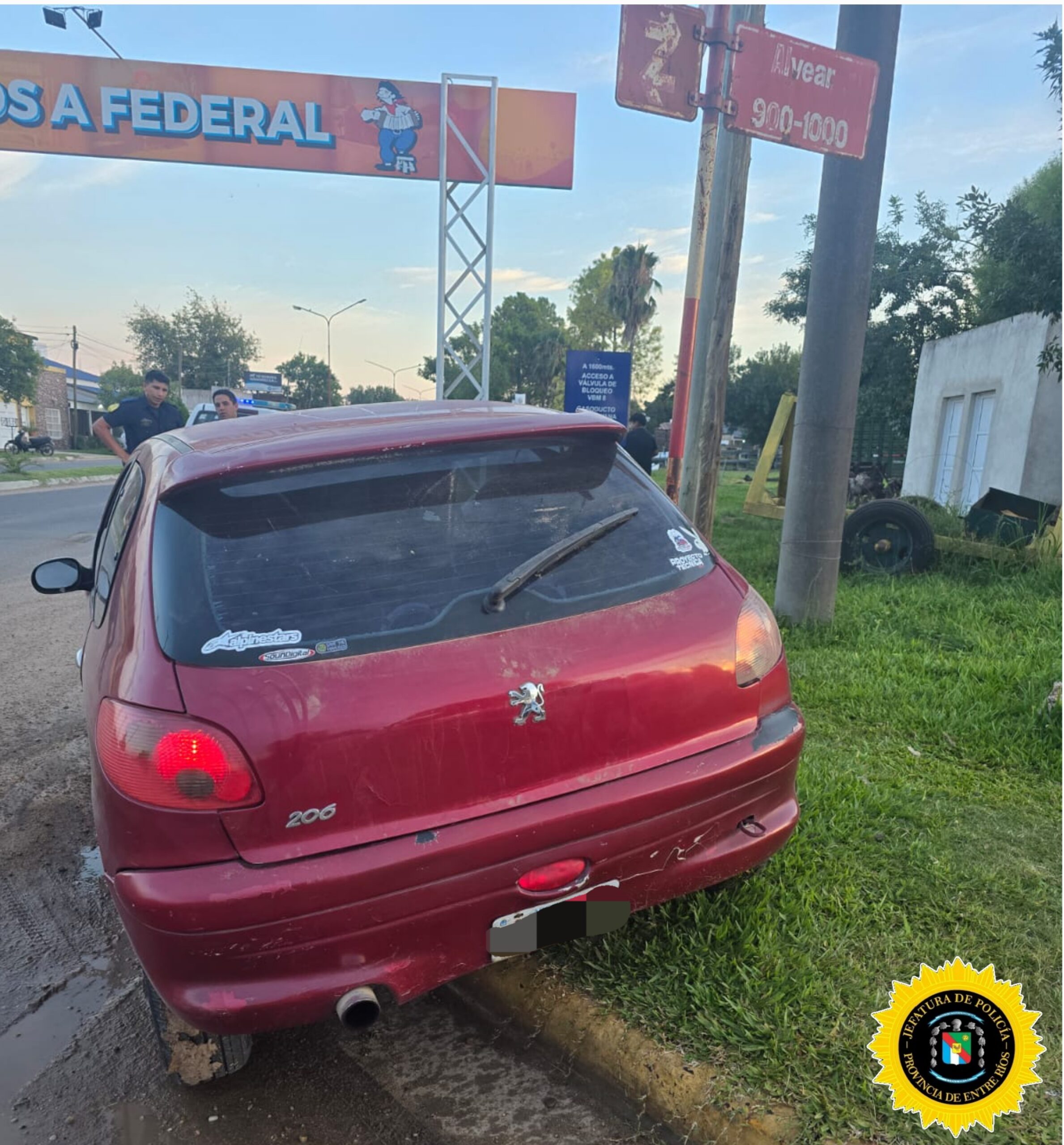 El primer incidente ocurrió alrededor de las 06:20 horas del domingo 25 de enero, en la intersección de calles Belgrano y Alvear, cuando un vehículo Peugeot 206 perdió el control debido al exceso de velocidad y chocó contra un cartel. El conductor, de 21 años de edad, quien afortunadamente no presentaba lesiones, pero si dio positivo en el control de alcoholemia con 1,65 mg/l de alcohol en sangre, por lo que su vehículo fue retenido inmediatamente.