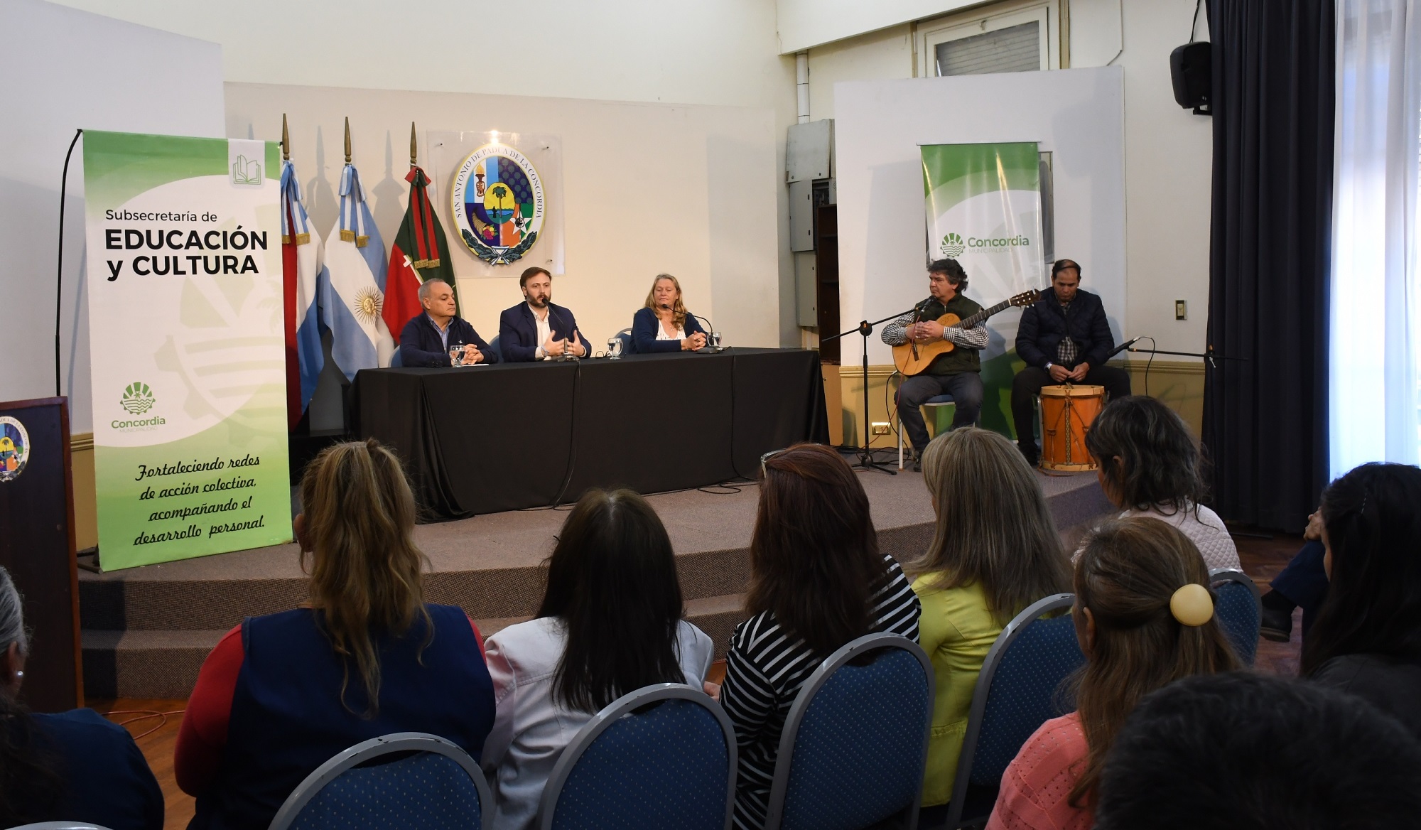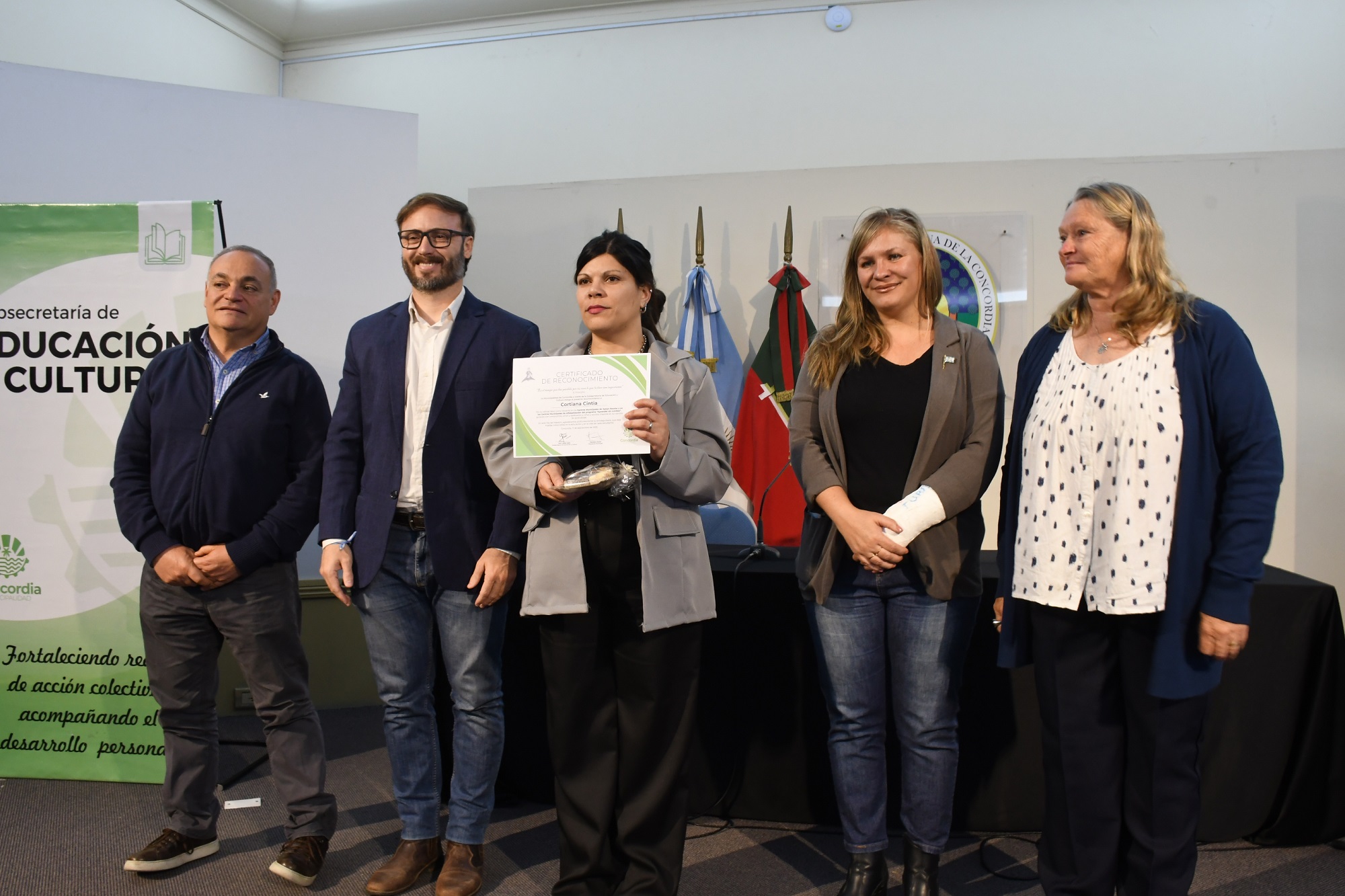 El Intendente Francisco Azcué, quien estuvo acompañado por el Subsecretario de Educación y Cultura Carlos Gatto y la Directora de Educación Nélida Amam, agradeció a los presentes por su dedicación y su vocación en llevar adelante la labor pedagógica, destacando la “entrega, esfuerzo y sacrificio. Cumplen un rol sumamente importante, indispensable para nuestra sociedad porque soñamos con transformar nuestra ciudad para que Concordia se ponga de pie y vuelva a ser una tierra pujante”, expresó.
