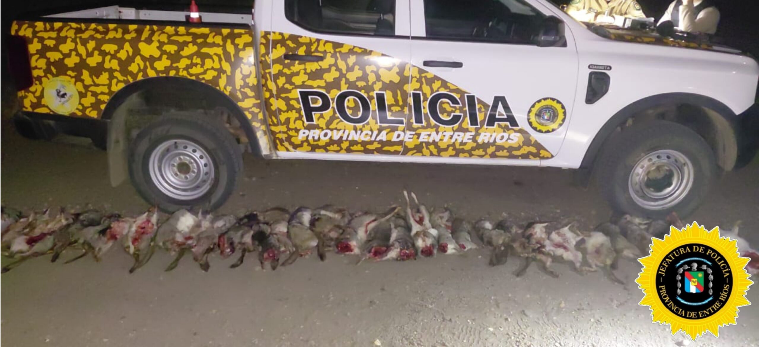 En la madrugada del 8 de octubre, personal de la Brigada de Prevención de Delitos Rurales Federacion, llevó a cabo un operativo en Colonia Racedo, paraje Guayaquil, en el marco de los controles dispuestos para el cumplimiento de la Ley Provincial de Caza Nº 4.841, que regula la actividad de caza en Entre Ríos.