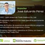 El encuentro contará con la disertación de José Eduardo Pérez, CEO de Latin American Trade (Haikou) Co., Ltd., empresario argentino con base operativa permanente en China y más de 15 años de experiencia en el desarrollo de proyectos comerciales entre ambos países.