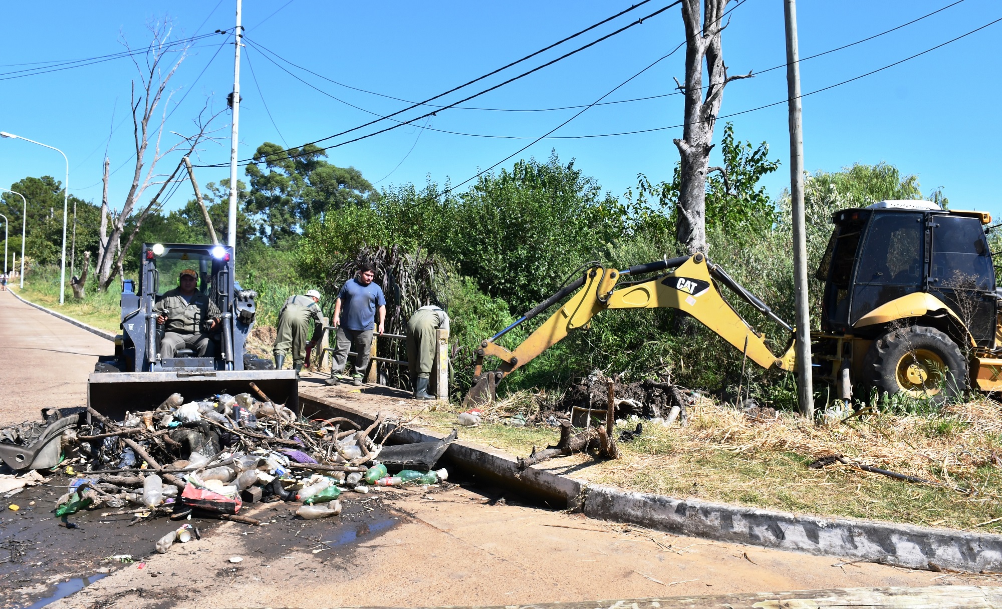 Uno de los sectores en los que se llevaron adelante tareas de limpieza fue sobre calle Cadario, en una de las alcantarillas ubicadas sobre el arroyo Manzores. En el lugar se retiró una importante cantidad de residuos, muchos de ellos domiciliarios.