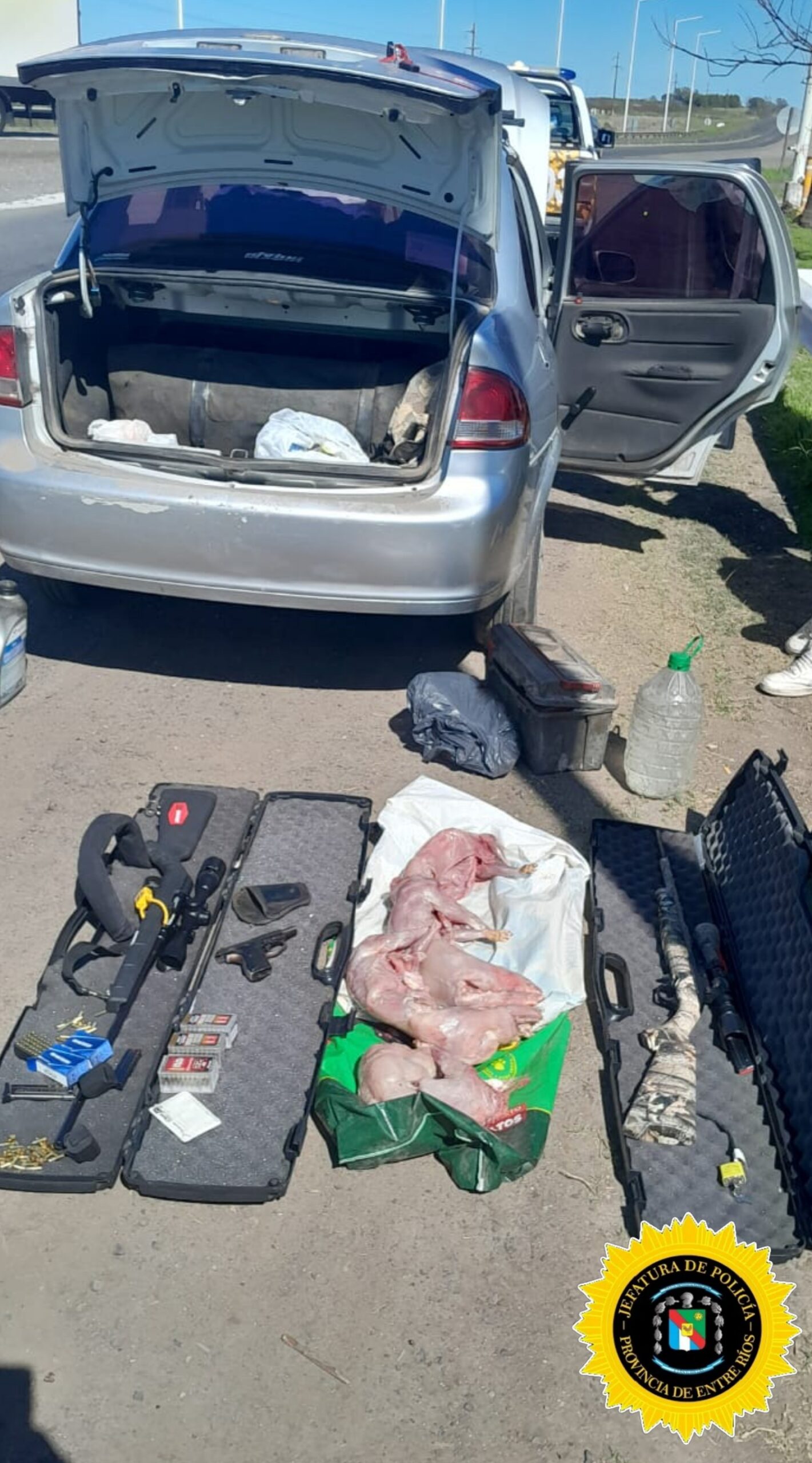 En horas cercanas al mediodía de este viernes, la Brigada Macia dependiente de la Dirección General de Prevención de Delitos Rurales, a requerimiento del Puesto Caminero Tala dependiente de la Dirección General de Prevención y Seguridad Vial, concurrio hasta el mismo en la interseccion de Rutas 6 y 39, donde habían interceptado un automovil Chevrolet Corsa de color gris con tres ocupantes a bordo y en situación de haber practicado la actividad de caza de manera antirreglamentaria, ya que trasladaban armas y piezas de caza de animales de la fauna silvestres de especie no autorizadas, como tampoco el calibre de las armas qué portaban, entre otras irregularidades respecto a la ley de caza y sus reglamentaciones. Motivo por el cual los brigadistas procedieron al secuestro de: 01 pistola semiautomática calibre .22 marca, 01 carabina semiautomática marca Magtech calibre .22, 01 carabina semiautomático marca Savage A22 Magnum calibre 22, y más de 300 cartuchos del mismo calibre y distintas marcas; además se practicó el decomiso de 04 vizcachas muertas y evisceradas.