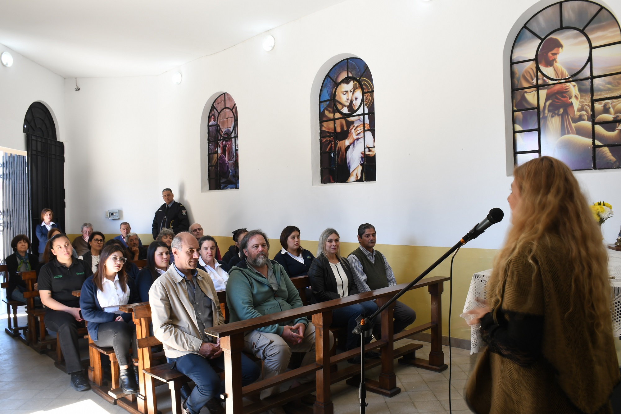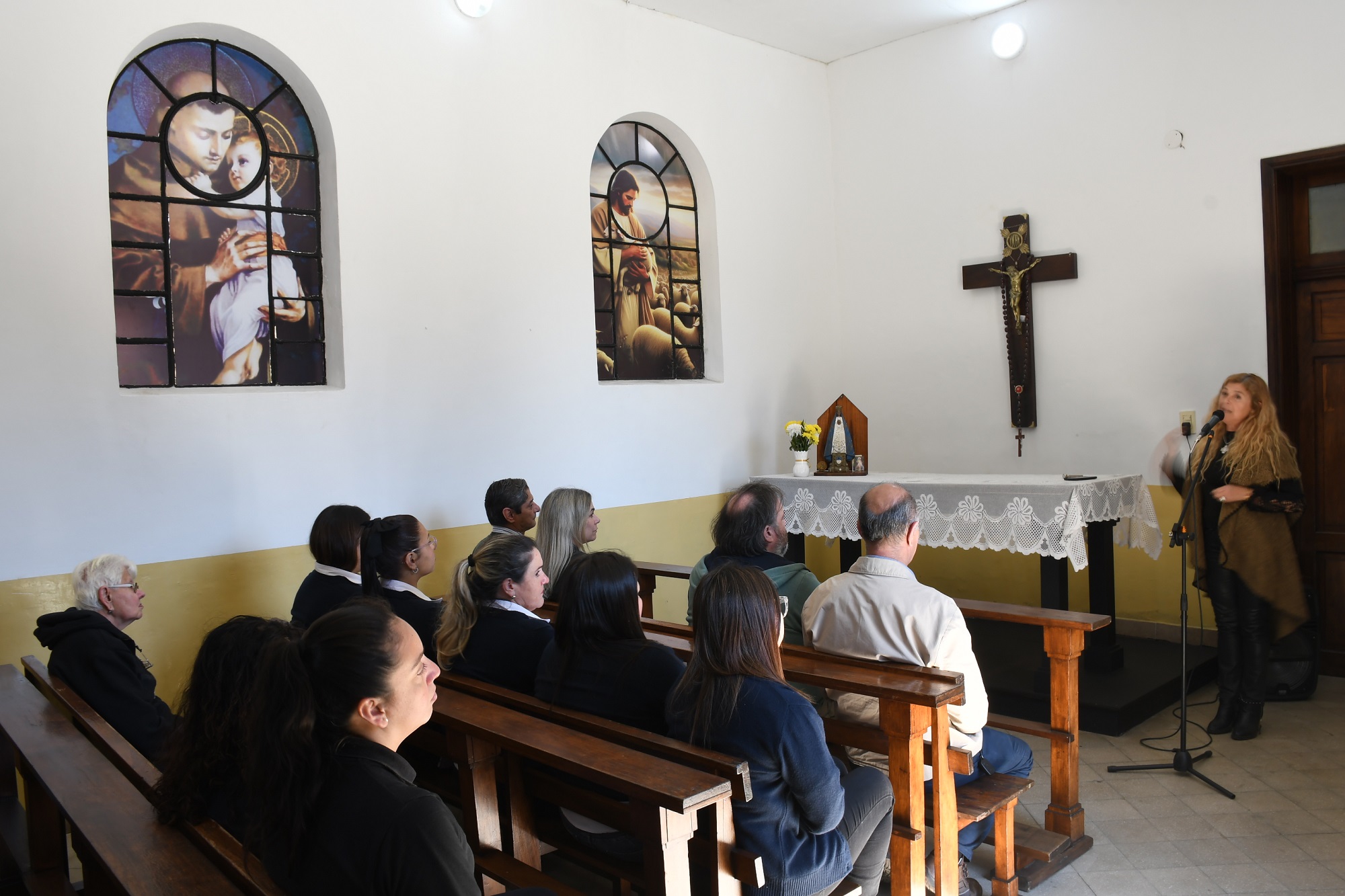 Se realizaron intervenciones en el techo con el recambio de chapas, de canaletas y el sistema eléctrico del lugar, además de trabajos de pintura en general, colocación de cuadros, recuperación de los bancos y de la cruz principal.